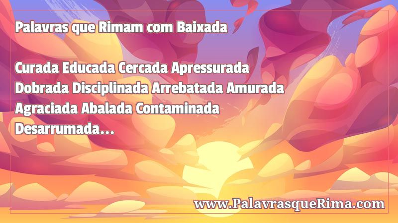 Rima para Baixada, 200 rimas encontradas, a rima é uma repetição de sons a partir da vogal da última sílaba tônica do verso: veja todas palavras que podem rimar com Baixada