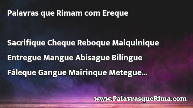 Rima para Ereque, 200 rimas encontradas, a rima é uma repetição de sons a partir da vogal da última sílaba tônica do verso: veja todas palavras que podem rimar com Ereque