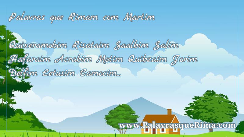 Rima para Martim, 200 rimas encontradas, a rima é uma repetição de sons a partir da vogal da última sílaba tônica do verso: veja todas palavras que podem rimar com Martim