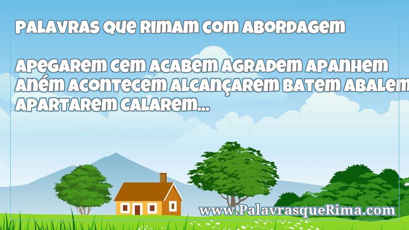 Rima para Abordagem, 200 rimas encontradas, a rima é uma repetição de sons a partir da vogal da última sílaba tônica do verso: veja todas palavras que podem rimar com Abordagem