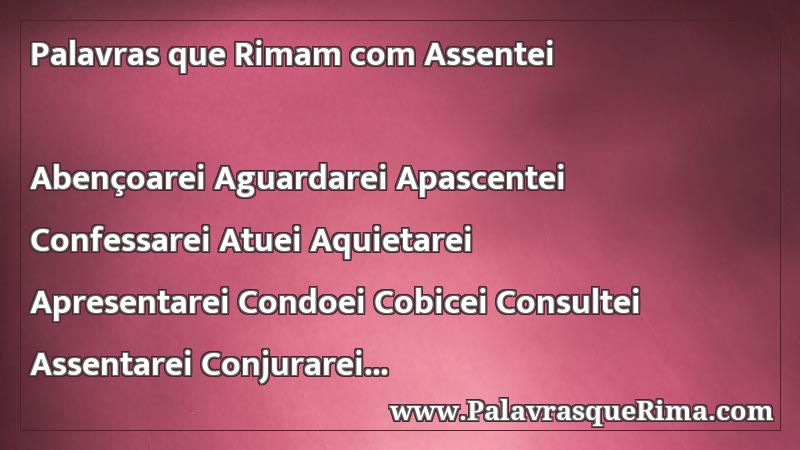 Rima para Assentei, 200 rimas encontradas, a rima é uma repetição de sons a partir da vogal da última sílaba tônica do verso: veja todas palavras que podem rimar com Assentei