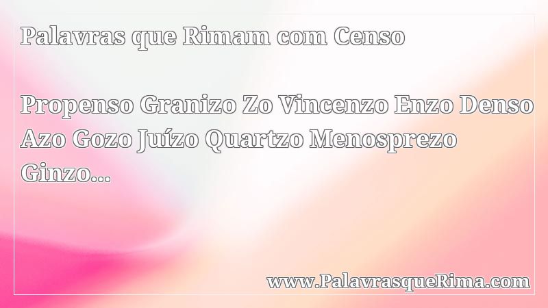 Rima para Censo, 31 rimas encontradas, a rima é uma repetição de sons a partir da vogal da última sílaba tônica do verso: veja todas palavras que podem rimar com Censo