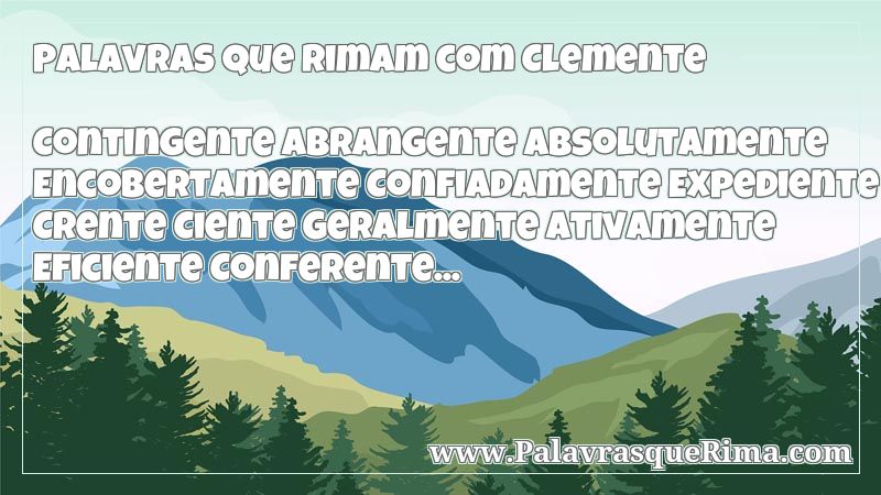 Rima para Clemente, 200 rimas encontradas, a rima é uma repetição de sons a partir da vogal da última sílaba tônica do verso: veja todas palavras que podem rimar com Clemente