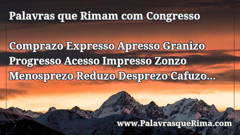 Rima para Congresso, 38 rimas encontradas, a rima é uma repetição de sons a partir da vogal da última sílaba tônica do verso: veja todas palavras que podem rimar com Congresso