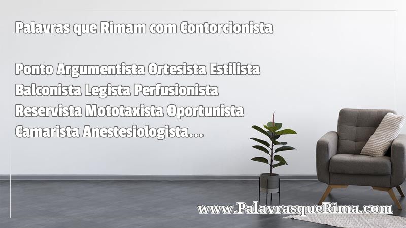 Rima para Contorcionista, 202 rimas encontradas, a rima é uma repetição de sons a partir da vogal da última sílaba tônica do verso: veja todas palavras que podem rimar com Contorcionista