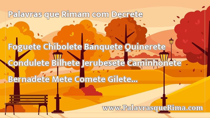 Rima para Decrete, 139 rimas encontradas, a rima é uma repetição de sons a partir da vogal da última sílaba tônica do verso: veja todas palavras que podem rimar com Decrete