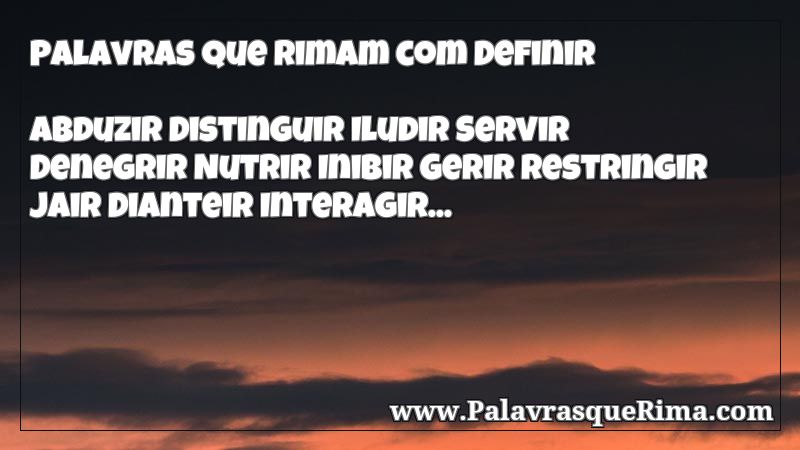 Rima para Definir, 200 rimas encontradas, a rima é uma repetição de sons a partir da vogal da última sílaba tônica do verso: veja todas palavras que podem rimar com Definir