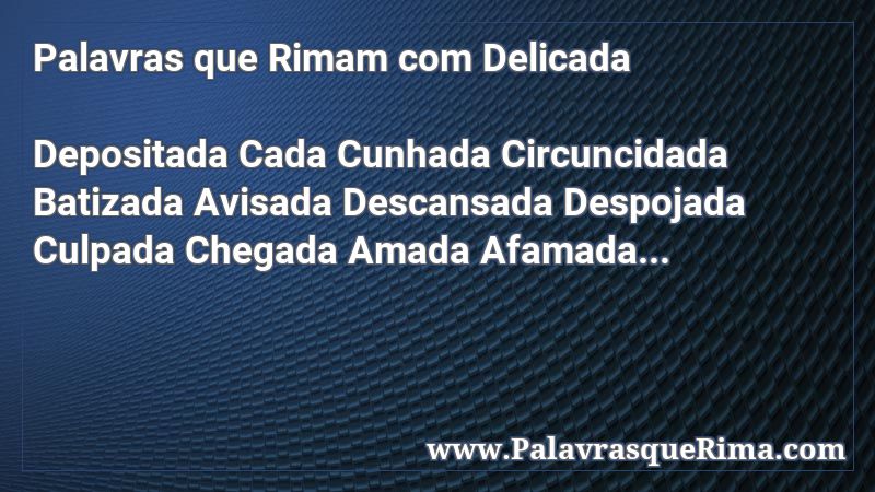 Rima para Delicada, 200 rimas encontradas, a rima é uma repetição de sons a partir da vogal da última sílaba tônica do verso: veja todas palavras que podem rimar com Delicada