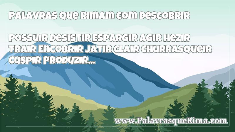 Rima para Descobrir, 200 rimas encontradas, a rima é uma repetição de sons a partir da vogal da última sílaba tônica do verso: veja todas palavras que podem rimar com Descobrir