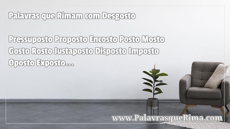 Rima para Desgosto, 14 rimas encontradas, a rima é uma repetição de sons a partir da vogal da última sílaba tônica do verso: veja todas palavras que podem rimar com Desgosto
