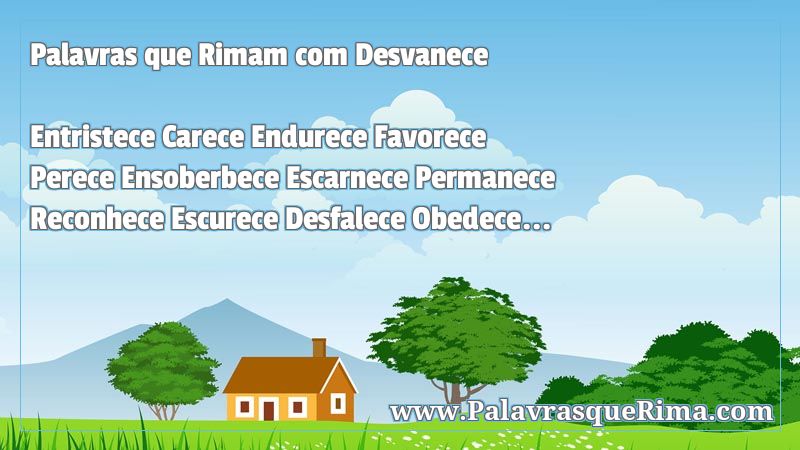Rima para Desvanece, 43 rimas encontradas, a rima é uma repetição de sons a partir da vogal da última sílaba tônica do verso: veja todas palavras que podem rimar com Desvanece
