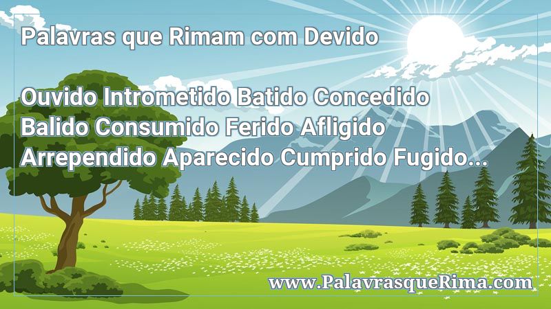 Rima para Devido, 200 rimas encontradas, a rima é uma repetição de sons a partir da vogal da última sílaba tônica do verso: veja todas palavras que podem rimar com Devido