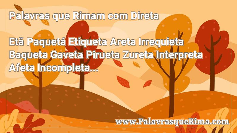 Rima para Direta, 106 rimas encontradas, a rima é uma repetição de sons a partir da vogal da última sílaba tônica do verso: veja todas palavras que podem rimar com Direta