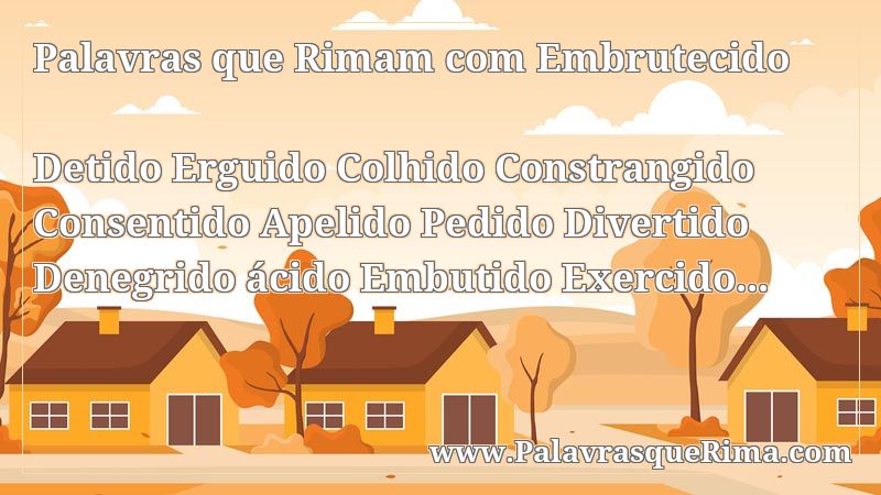 Rima para Embrutecido, 200 rimas encontradas, a rima é uma repetição de sons a partir da vogal da última sílaba tônica do verso: veja todas palavras que podem rimar com Embrutecido