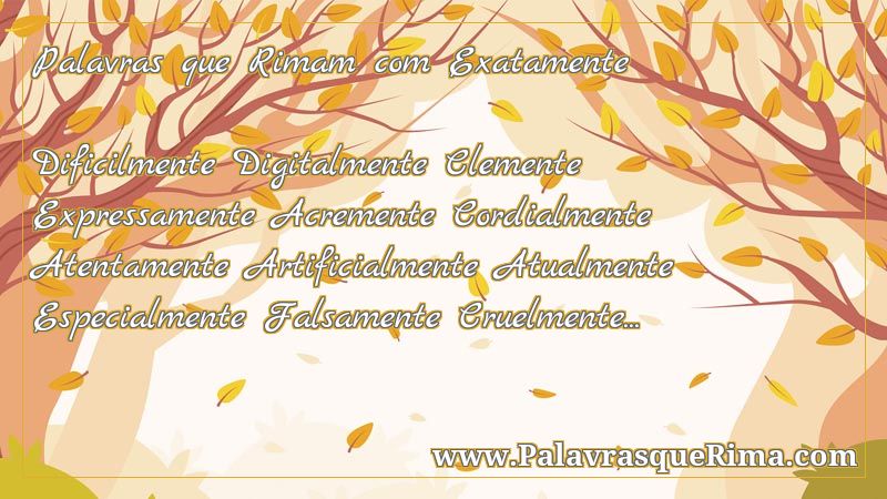 Rima para Exatamente, 200 rimas encontradas, a rima é uma repetição de sons a partir da vogal da última sílaba tônica do verso: veja todas palavras que podem rimar com Exatamente