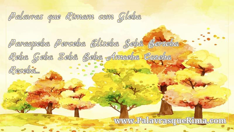 Rima para Gleba, 18 rimas encontradas, a rima é uma repetição de sons a partir da vogal da última sílaba tônica do verso: veja todas palavras que podem rimar com Gleba