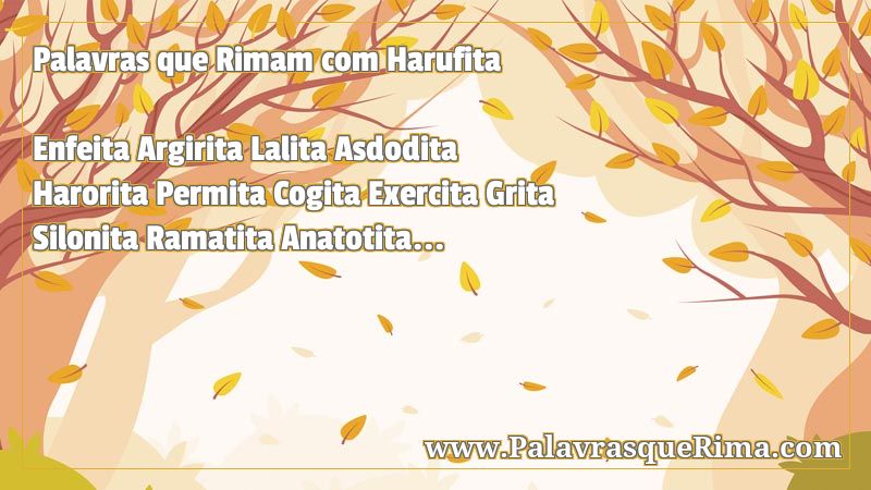 Rima para Harufita, 200 rimas encontradas, a rima é uma repetição de sons a partir da vogal da última sílaba tônica do verso: veja todas palavras que podem rimar com Harufita
