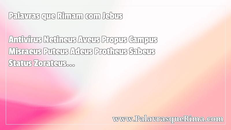 Rima para Jebus, 109 rimas encontradas, a rima é uma repetição de sons a partir da vogal da última sílaba tônica do verso: veja todas palavras que podem rimar com Jebus