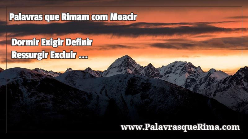 Rima para Moacir, 200 rimas encontradas, a rima é uma repetição de sons a partir da vogal da última sílaba tônica do verso: veja todas palavras que podem rimar com Moacir