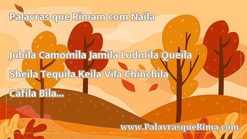 Rima para Naila, 47 rimas encontradas, a rima é uma repetição de sons a partir da vogal da última sílaba tônica do verso: veja todas palavras que podem rimar com Naila