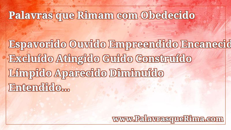 Rima para Obedecido, 200 rimas encontradas, a rima é uma repetição de sons a partir da vogal da última sílaba tônica do verso: veja todas palavras que podem rimar com Obedecido