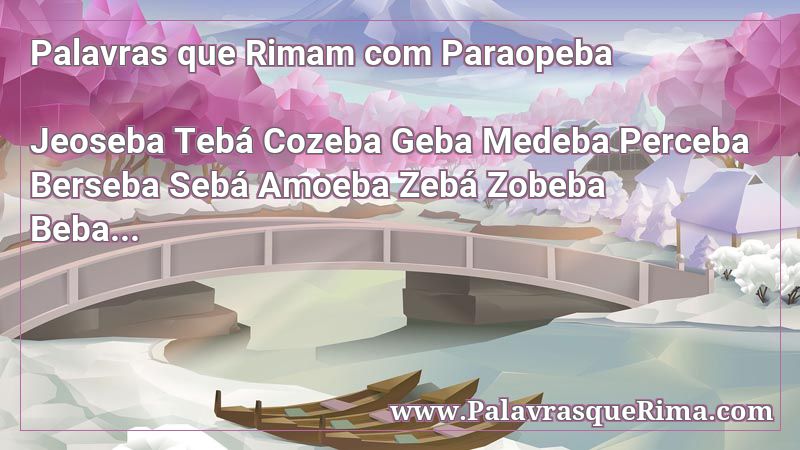 Rima para Paraopeba, 18 rimas encontradas, a rima é uma repetição de sons a partir da vogal da última sílaba tônica do verso: veja todas palavras que podem rimar com Paraopeba