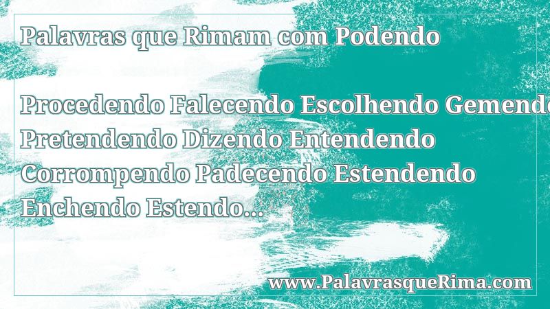 Rima para Podendo, 130 rimas encontradas, a rima é uma repetição de sons a partir da vogal da última sílaba tônica do verso: veja todas palavras que podem rimar com Podendo
