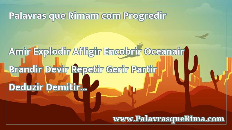 Rima para Progredir, 200 rimas encontradas, a rima é uma repetição de sons a partir da vogal da última sílaba tônica do verso: veja todas palavras que podem rimar com Progredir