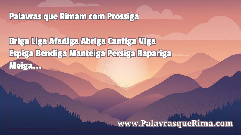 Rima para Prossiga, 32 rimas encontradas, a rima é uma repetição de sons a partir da vogal da última sílaba tônica do verso: veja todas palavras que podem rimar com Prossiga