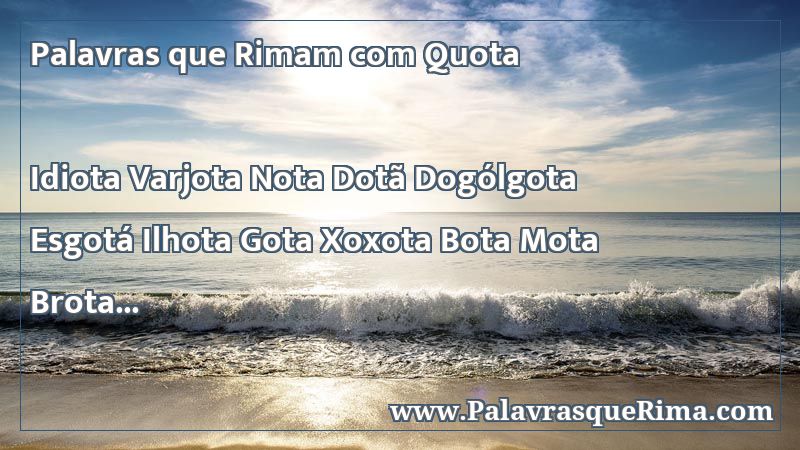 Rima para Quota, 34 rimas encontradas, a rima é uma repetição de sons a partir da vogal da última sílaba tônica do verso: veja todas palavras que podem rimar com Quota