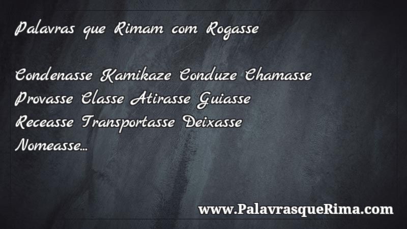 Rima para Rogasse, 186 rimas encontradas, a rima é uma repetição de sons a partir da vogal da última sílaba tônica do verso: veja todas palavras que podem rimar com Rogasse