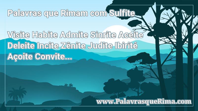 Rima para Sulfite, 65 rimas encontradas, a rima é uma repetição de sons a partir da vogal da última sílaba tônica do verso: veja todas palavras que podem rimar com Sulfite